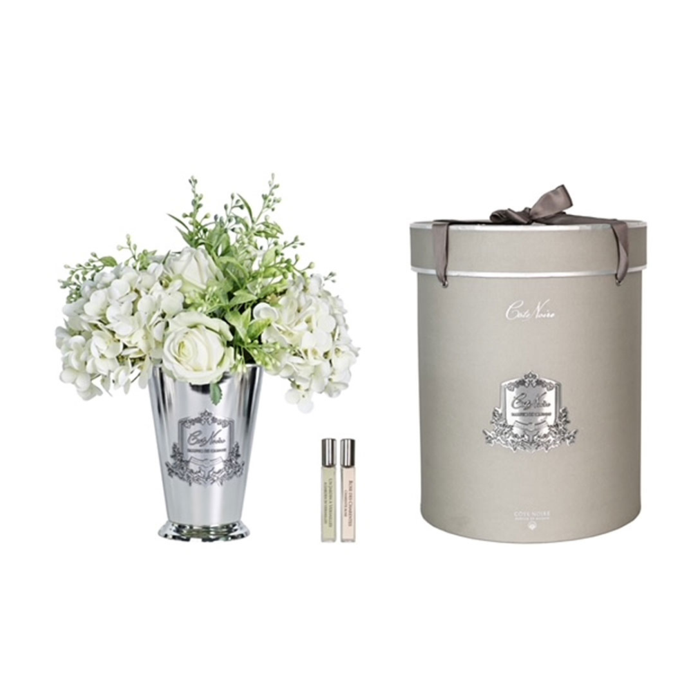 Cote Noire Grand Summer Posies in Silver Goblet (Green & White)-Beauty Affairs1
