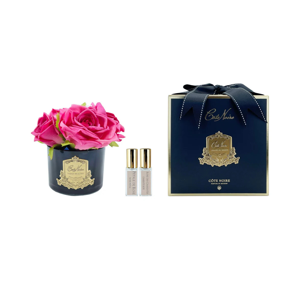 The vibrant carmine red of these roses adds a bold touch of colour, embodying passion and sophistication in every petal. Designed to look and feel like real roses, this arrangement captures the essence of natural beauty while delivering a luxurious scent that lingers. Ideal for creating a focal point in any room, the Cote Noire Magneta roses are a testament to refined taste, perfect for those who appreciate the finer things in life.