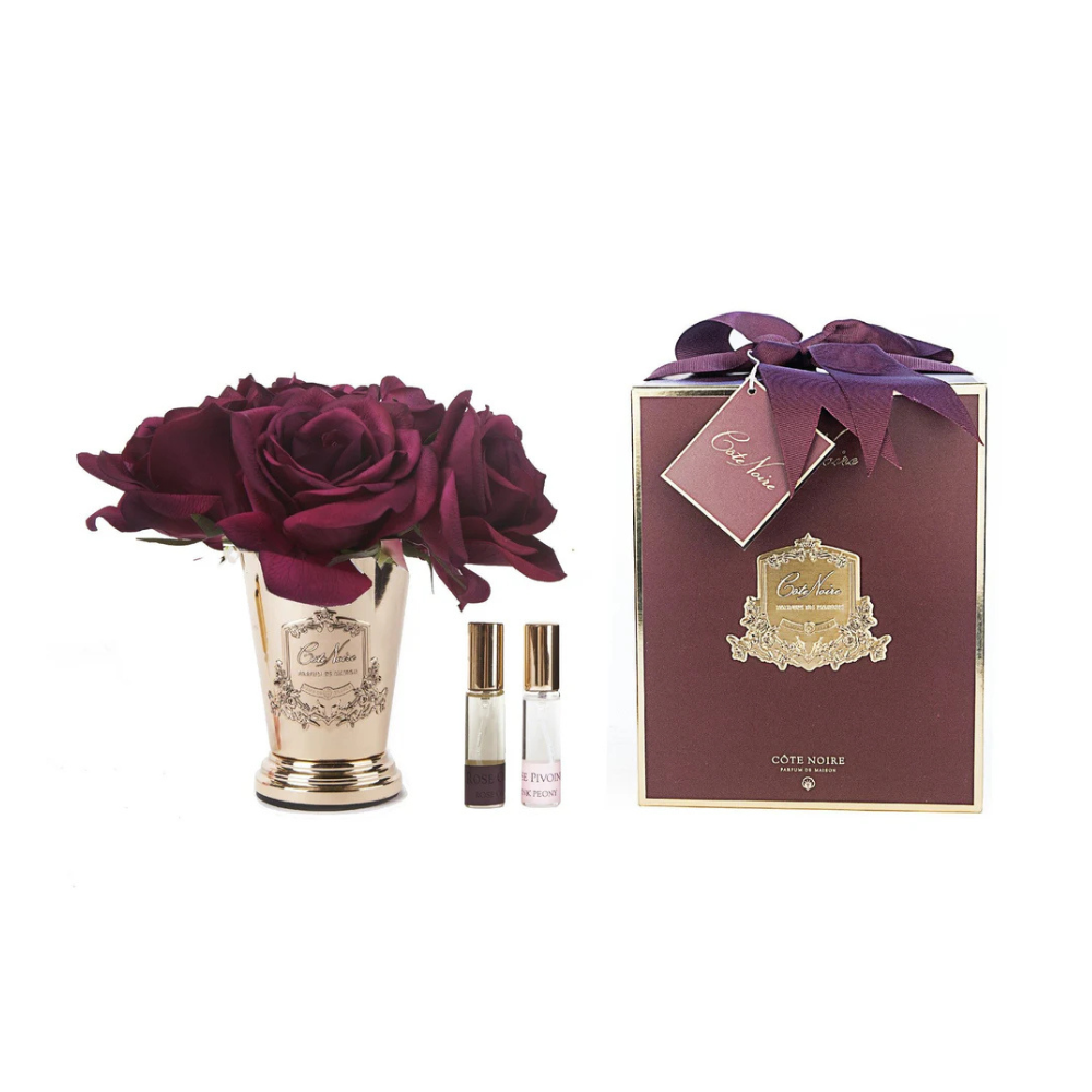 Cote Noire Seven Rose Bouquet in Champagne Metal Vase