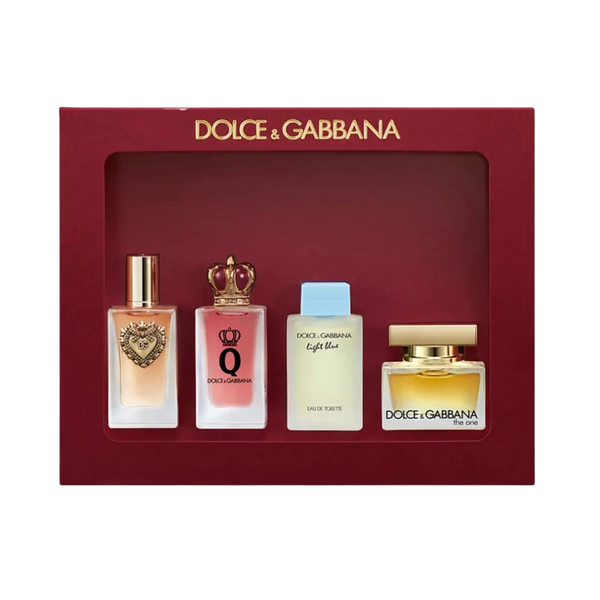 The Dolce & Gabbana Mini Collection is a set of iconic feminine fragrances with distinct scents, perfect for gift-giving and travel.